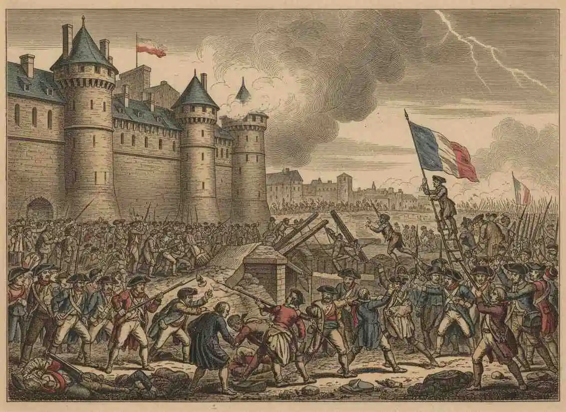 On July 14, 1789, a Parisian crowd stormed the Bastille — a medieval fortress and prison that symbolized royal tyranny. Although only seven prisoners were found inside, the symbolic importance of the event was enormous. It marked the moment ordinary people physically challenged royal power and won. July 14 is still celebrated as Bastille Day, France's national holiday, every year.